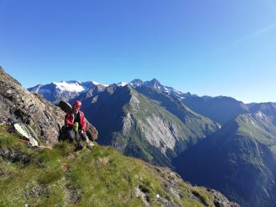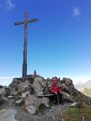 Die Blauspitze bei Kals ist ein eher kleiner Berg - 2575 m - mit unterschiedlichen Anstiegswegen. Da ist der Normalweg, einfaches Gehgelände für das man allerdings wegen der Ausgesetztheit schwindelfrei und trittsicher sein muss. Der Westgrat, der über 5 Einzelgipfel führt, drahtseilversichert und mit Hühnerleitern, Schwierigkeitsgrad I+ , schön und sehr abwechslungsreich, meine alljährliche Eingehtour zum Konditionstesten.