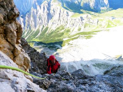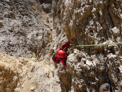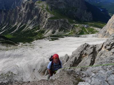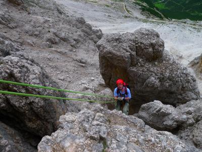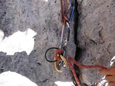 Das ist die Stelle, als ich mit Luft unter den Sohlen am Seil hing, sozusagen aus der Schwebe fotografiert.